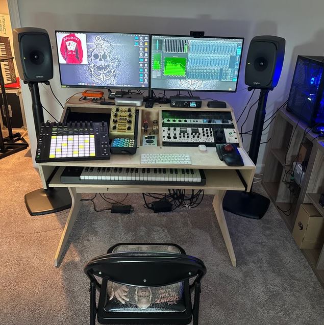 Transform your music studio with Trinity Desk Designs' customizable desks. Our desks are designed to be as unique as the artists who use them. Free yourself from the constraints of standard, prefabricated designs and embrace a workspace that truly reflects your creativity and individuality.